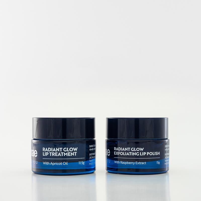 Saranghae Radiant Glow Lip Duo is the perfect combo for silky smooth lips. The Exfoliating Lip Polish gently buffs away flaky dead skin, while the Radiant Glow Lip Treatment nourishes and protects. Lips are supple, smooth and glowing with health!